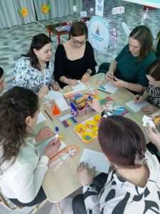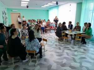 Организован образовательный экскурс (заведующий Голованова А.В.) по детскому саду, проведены открытые мероприятия с показом организации деятельности «Купание куклы» — младшая группа (воспитатель Бакатович Ю.Г.), «Уход за комнатными растениями» — подготовительная группа (Казанцева О.Н.); презентация организации развивающей предметно — пространственной среды по трудовому воспитанию через центры развития и сюжетно-ролевую игру (воспитатели Усачева И.А., Казанцева О.Н.) и образовательная практика по ознакомлению с трудом взрослых с участниками образовательного семинара «Кондитер», «Модельер» (воспитатель Филатова О.М.).